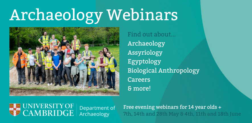 Each webinar will consist of an introduction to the subject area, a 30-minute taster lecture and a Q&A with a Cambridge academic. The final sessions will cover where Archaeology can take you in the future and how best to prepare for applying to Cambridge.
